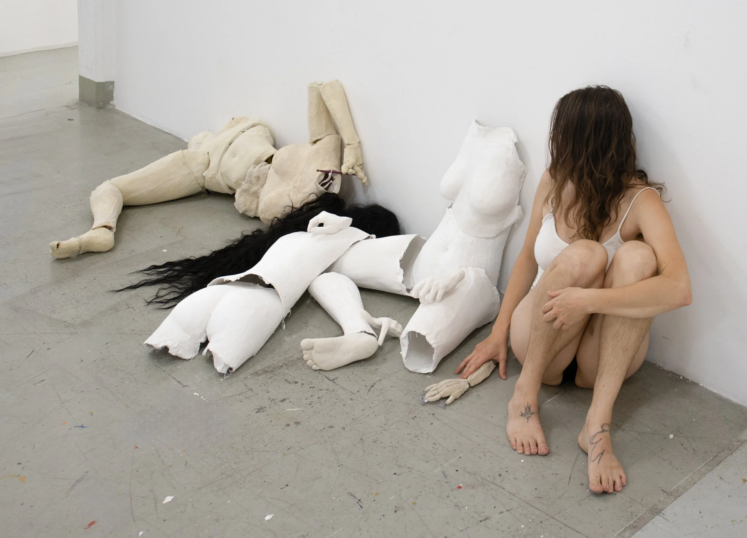 Die ausgestellte Arbeit, welche Einblick in einen noch laufenden künstlerischen Prozess gibt, versteht die Grauzone als produktiven Raum, in dem die Beziehung zwischen Körper und Abbild neu verhandelt wird. Dafür habe ich meinen Körper mit unterschiedlichen Materialien abgeformt, mich der eigenen Enthumanisierung und Objektifizierung ausgesetzt und anschliessend Wege gesucht, um das Entstandene wieder zu vermenschlichen. Dies erlaubte mir eine bewusste Auseinandersetzung mit der internalisierten patriarchalen Bildsprache, die unsere Wahrnehmung und Vorstellung prägt.