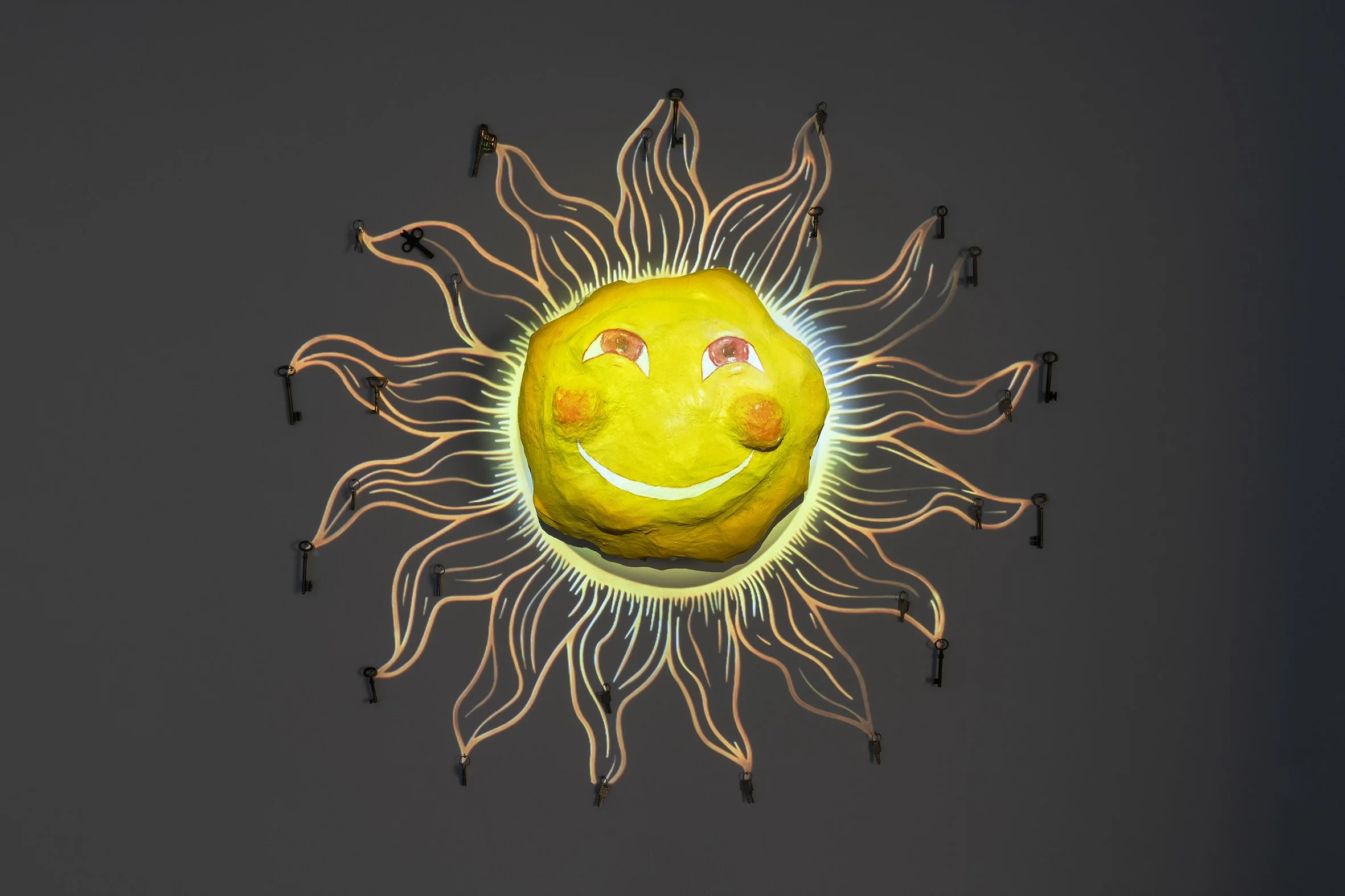 Das Projekt untersucht die Schnittstellen zwischen persönlicher und kollektiver Erinnerung im Kontext von Krieg und Verlust. Das Motiv der Sonne und der Schlüssel verbindet Themen von Wärme, Geborgenheit und gleichzeitig Schuldgefühlen über die eigene Sicherheit. Die Arbeit kombiniert unterschiedliche Materialien und Medien – von Papier bis zu Audio und Video – und schafft so ein vielschichtiges, immersives Erlebnis.